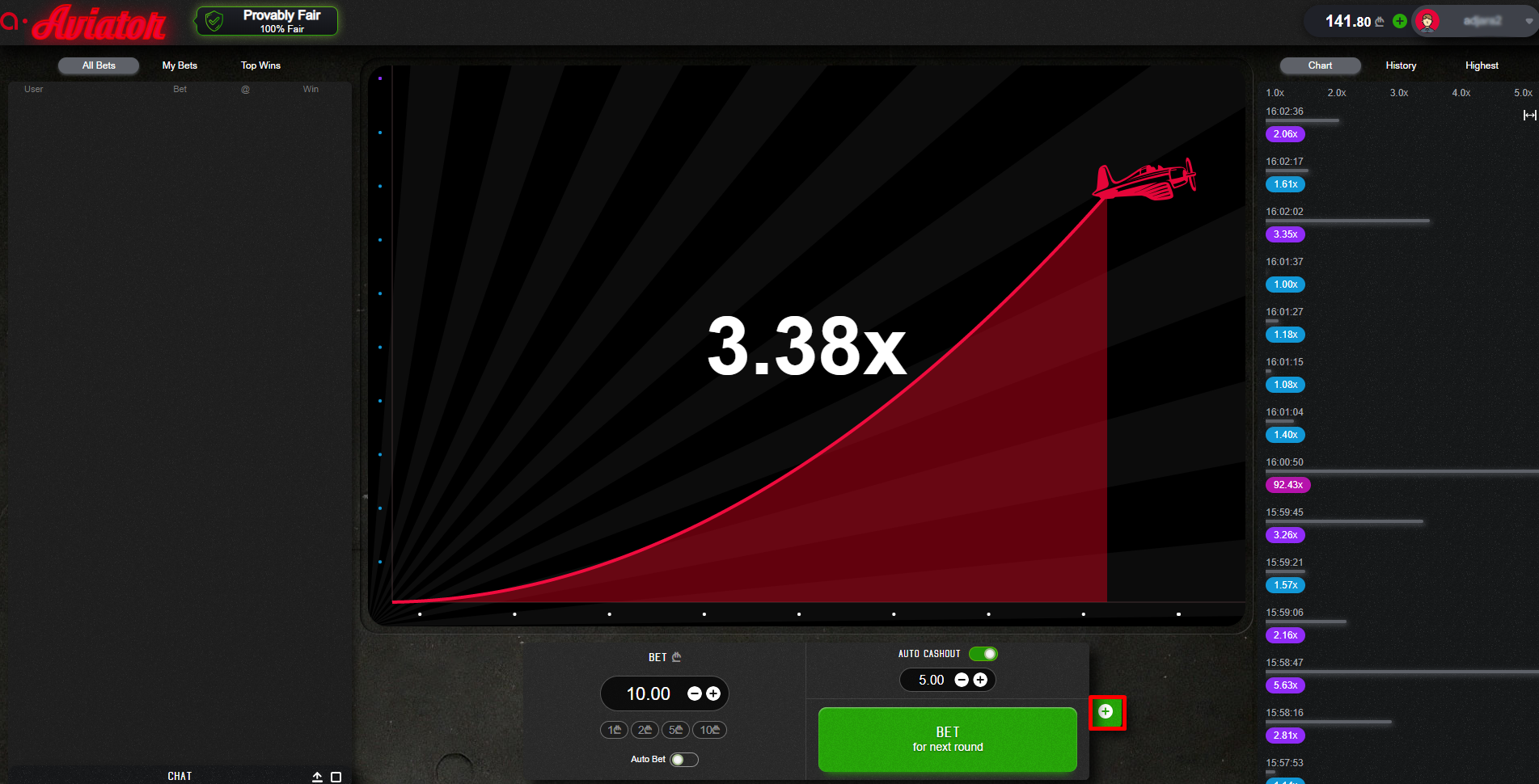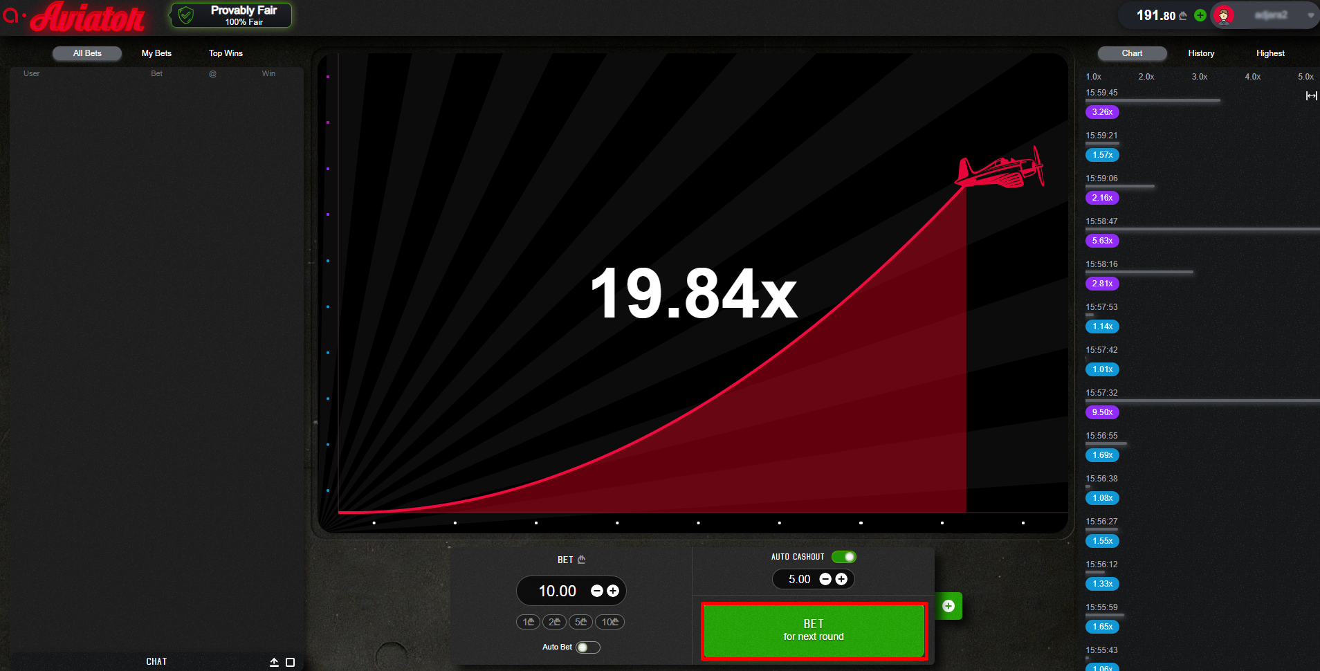 Visina multiplikatora koju dostigne simbol aviona u pojedinačnoj rundi iznosi od 1.00 do beskonačnosti.