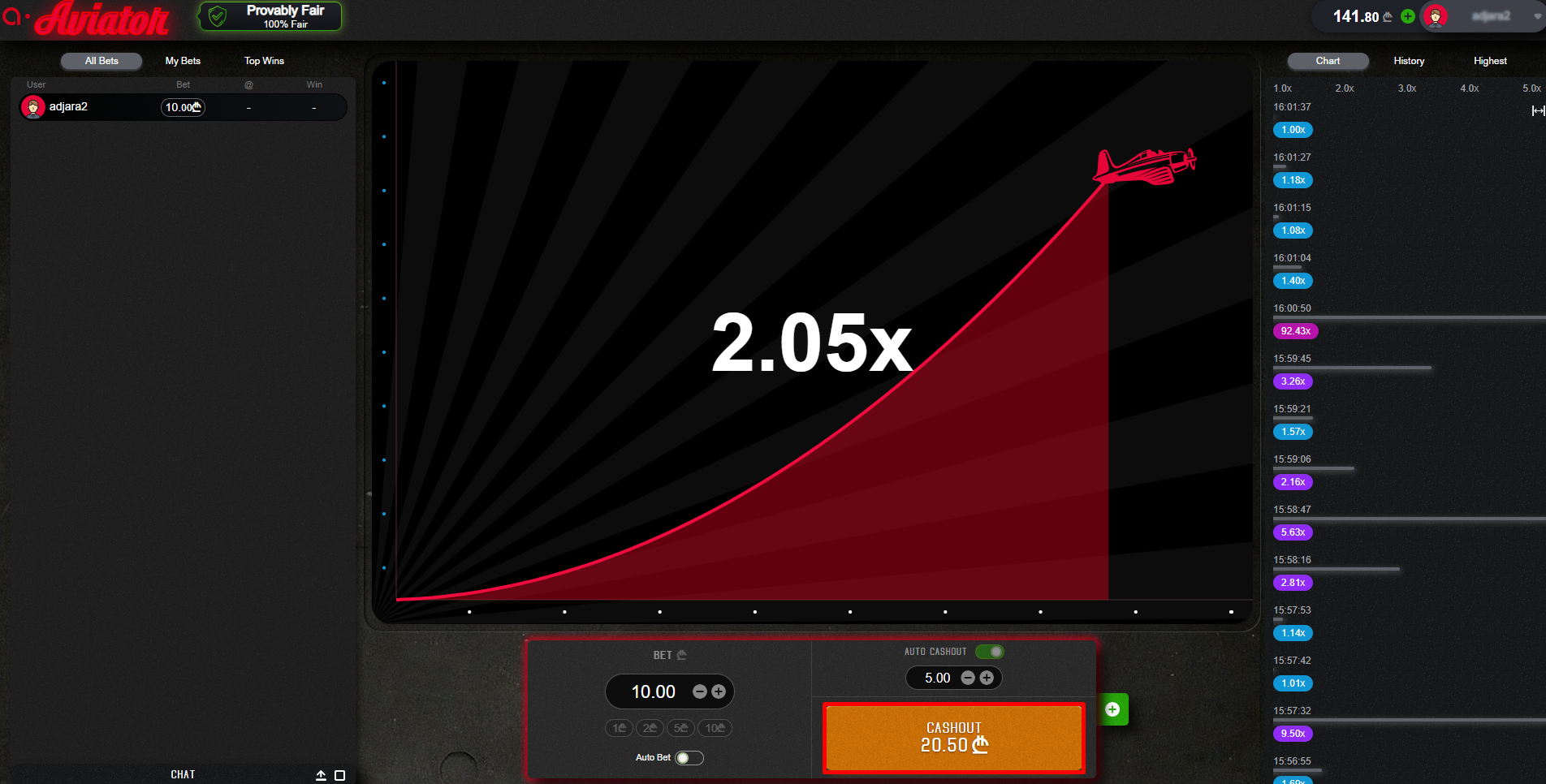 Po plasiranju opklade (Bet), igrač mora sačekati dok simbol aviona ne dostigne visinu. Nakon što simbol aviona dostigne visinu, igrač može zahtevati isplatu dobitka (cashout), sve do trenutka do kada simbol aviona ne nestane sa ekrana. U slučaju da simbol aviona nestane pre zahteva za isplatu (cashout) – igrač gubi iznos koji je uložio u toj rundi.