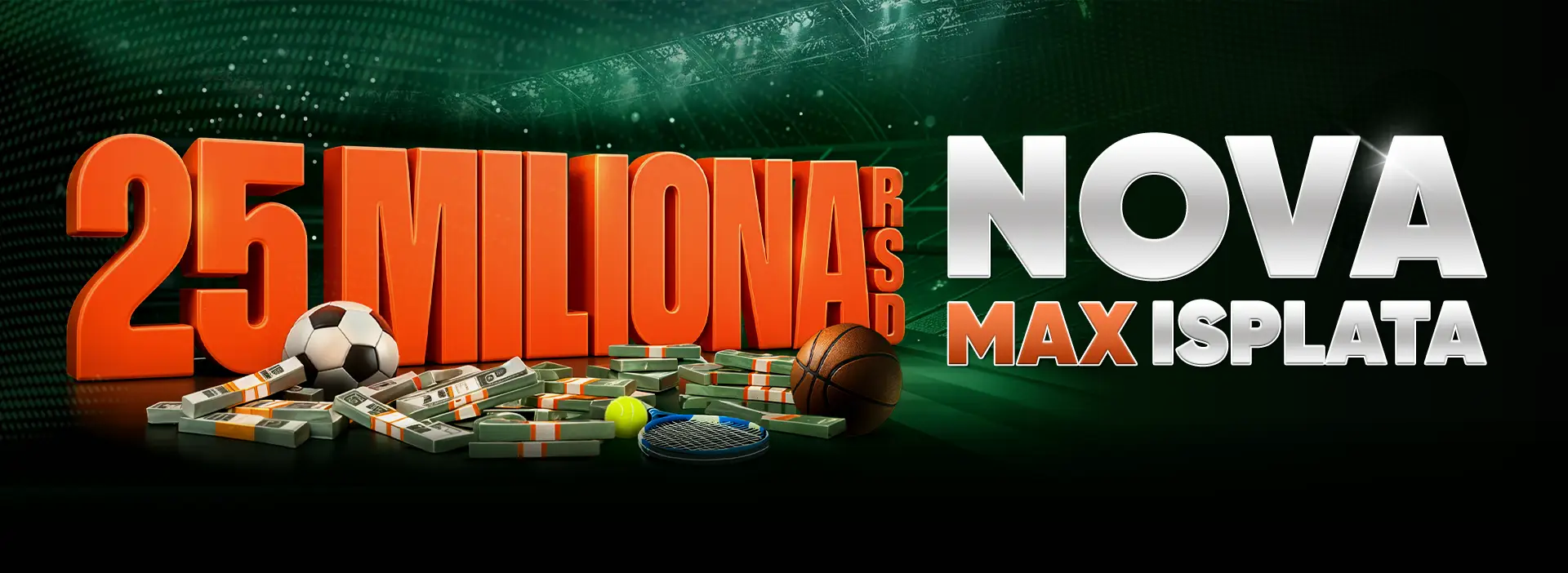Maksimalna isplata na svim tiketima sportskog klađenja u MaxBetu iznosi 25.000.000 dinara!