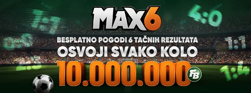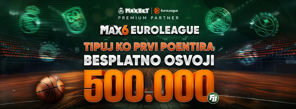 Vreme je za evroligaški Max6, novu igru u kojoj potpuno besplatno možeš da dođeš do šestocifrenog dobitka.