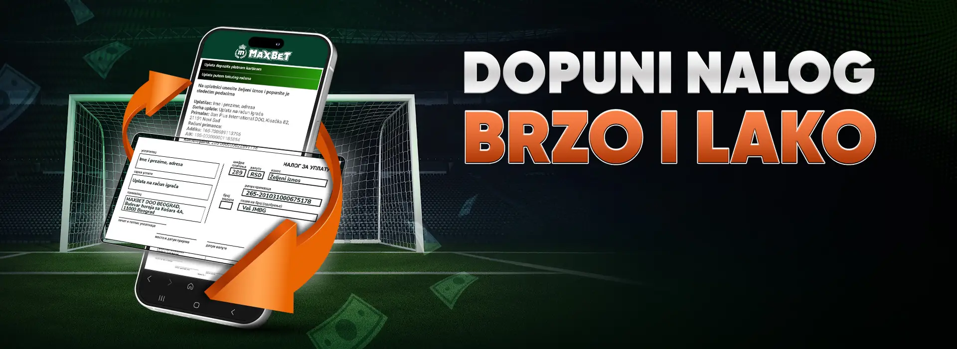 Prebaci novac na svoj MaxBet nalog preko tekućeg računa na šalteru banke, pošte, platne institucije ili putem elektronskog bankarstva.
