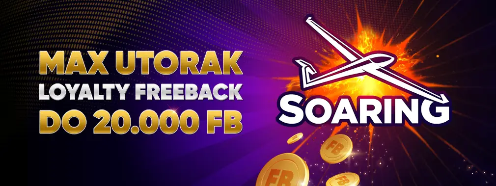 Znamo da igraš Soaring tokom cele nedelje, ali od sada ćeš ga posebno voleti utorkom jer baš utorkom nagrađujemo tvoju lojalnost i poklanjamo ti do 20.000 RSD Freeback-a za Soaring igru!